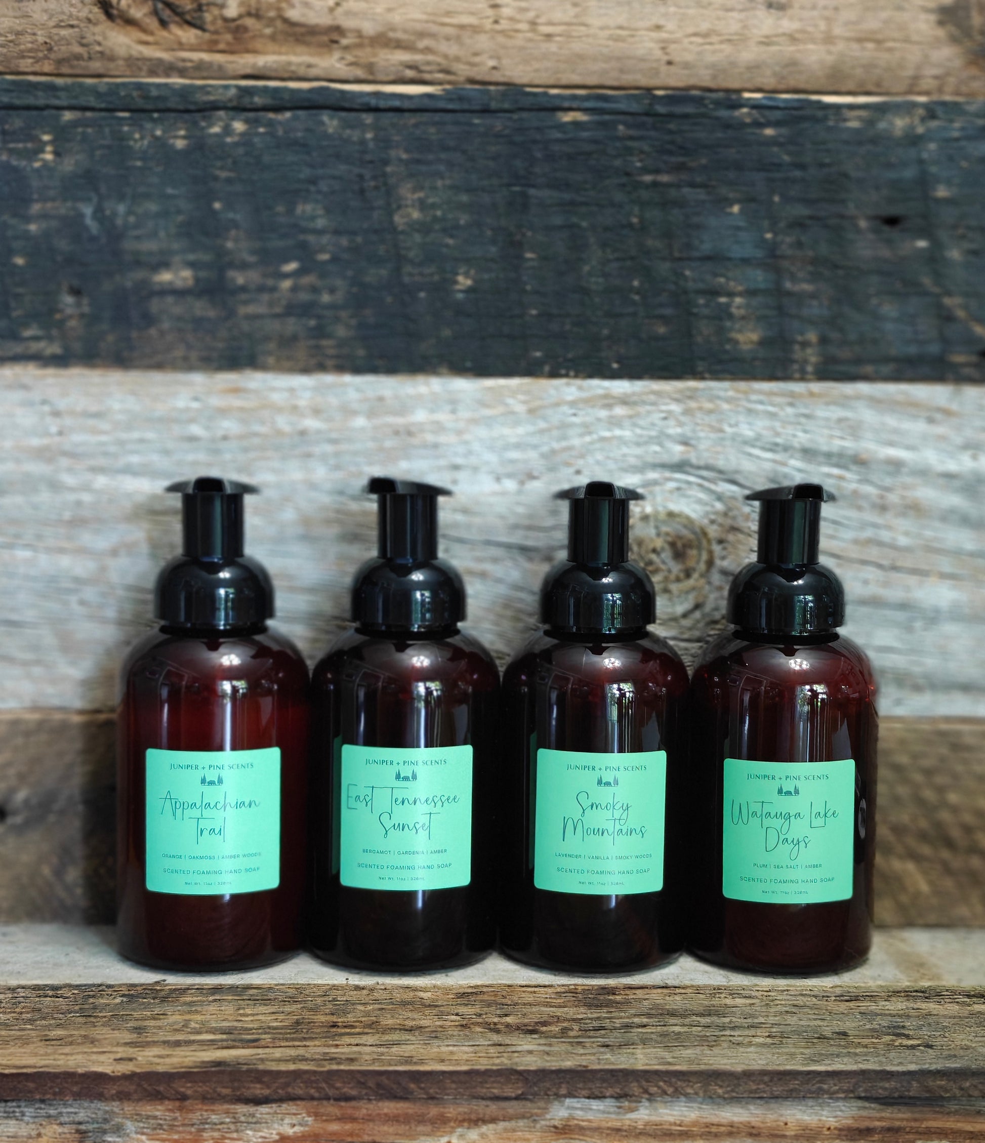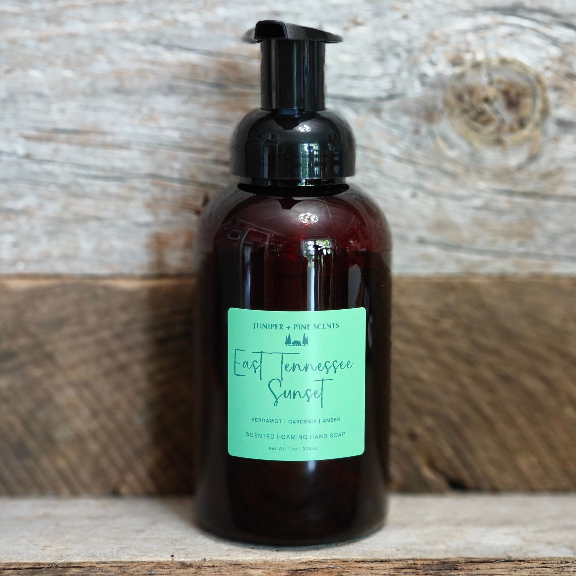 Discover the benefits of our latest product, Scented Foaming Hand Soap. A quick pump of this aloe vera based liquid will effectively cleanse and nourish your hands while leaving a delightful fragrance. Featuring an amber plastic bottle with a sleek black foaming top, this chic hand soap is the perfect addition to any kitchen or bathroom. 11 oz.